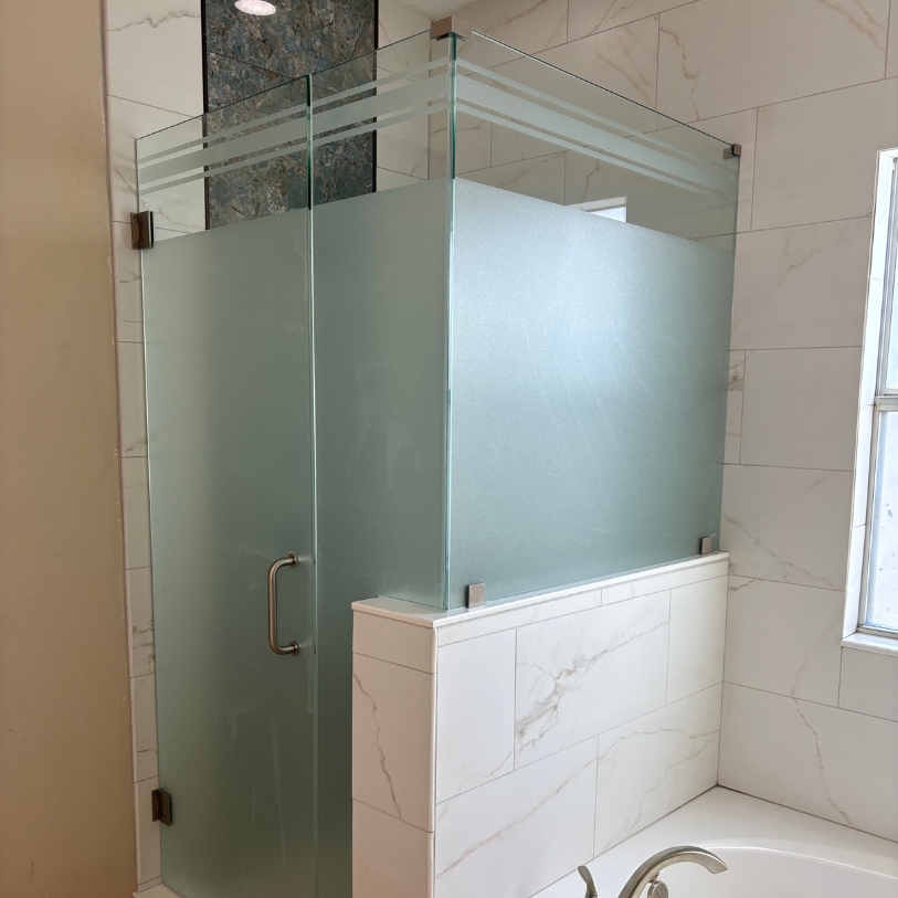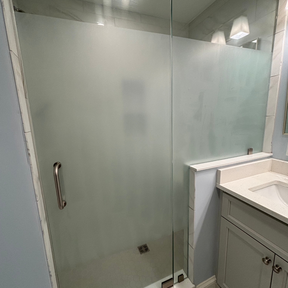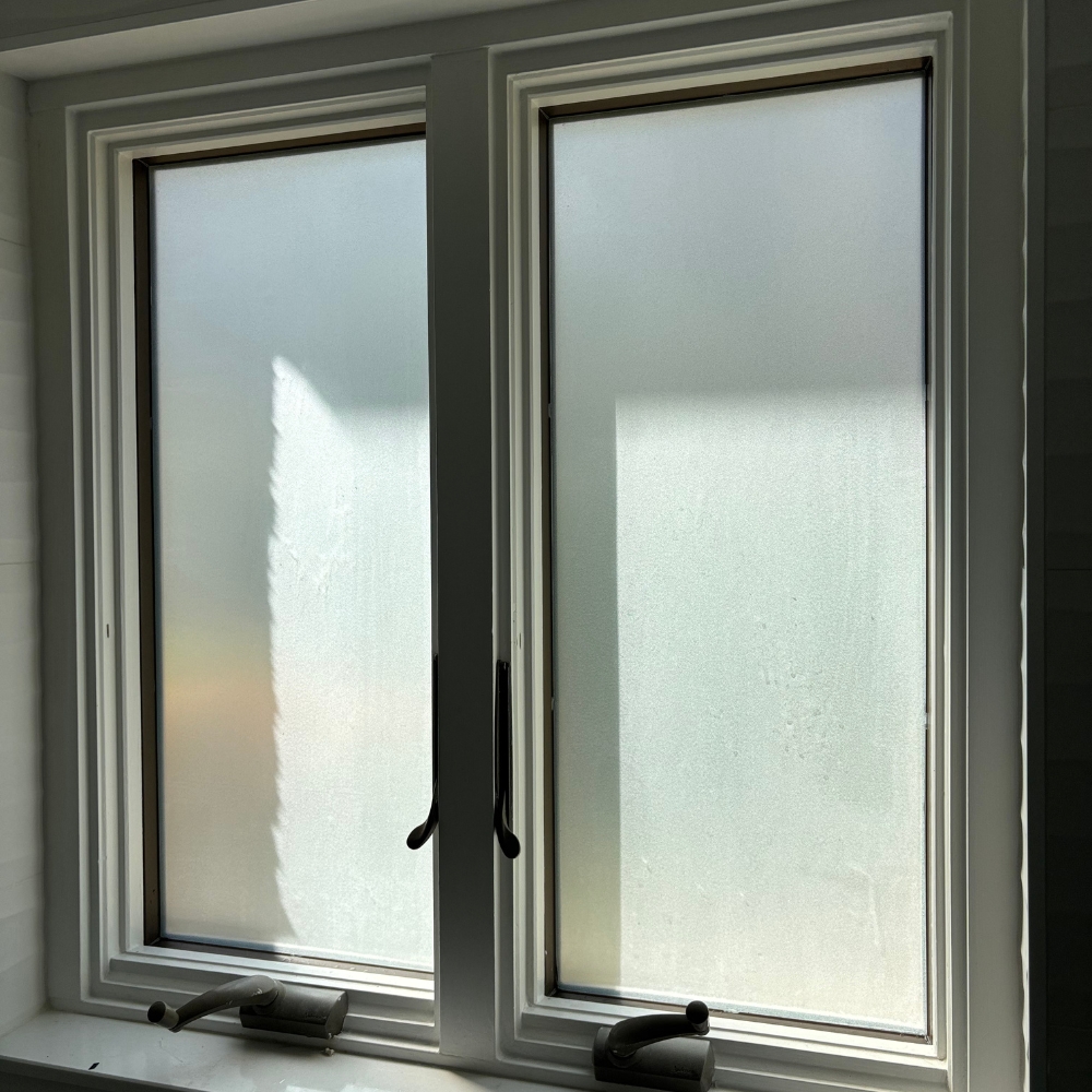 Frosted film solutions designed for glass surfaces in bathrooms, bedrooms, offices, storefronts, and commercial spaces. This option enhances privacy while allowing natural light to flow, creating a clean and modern look.